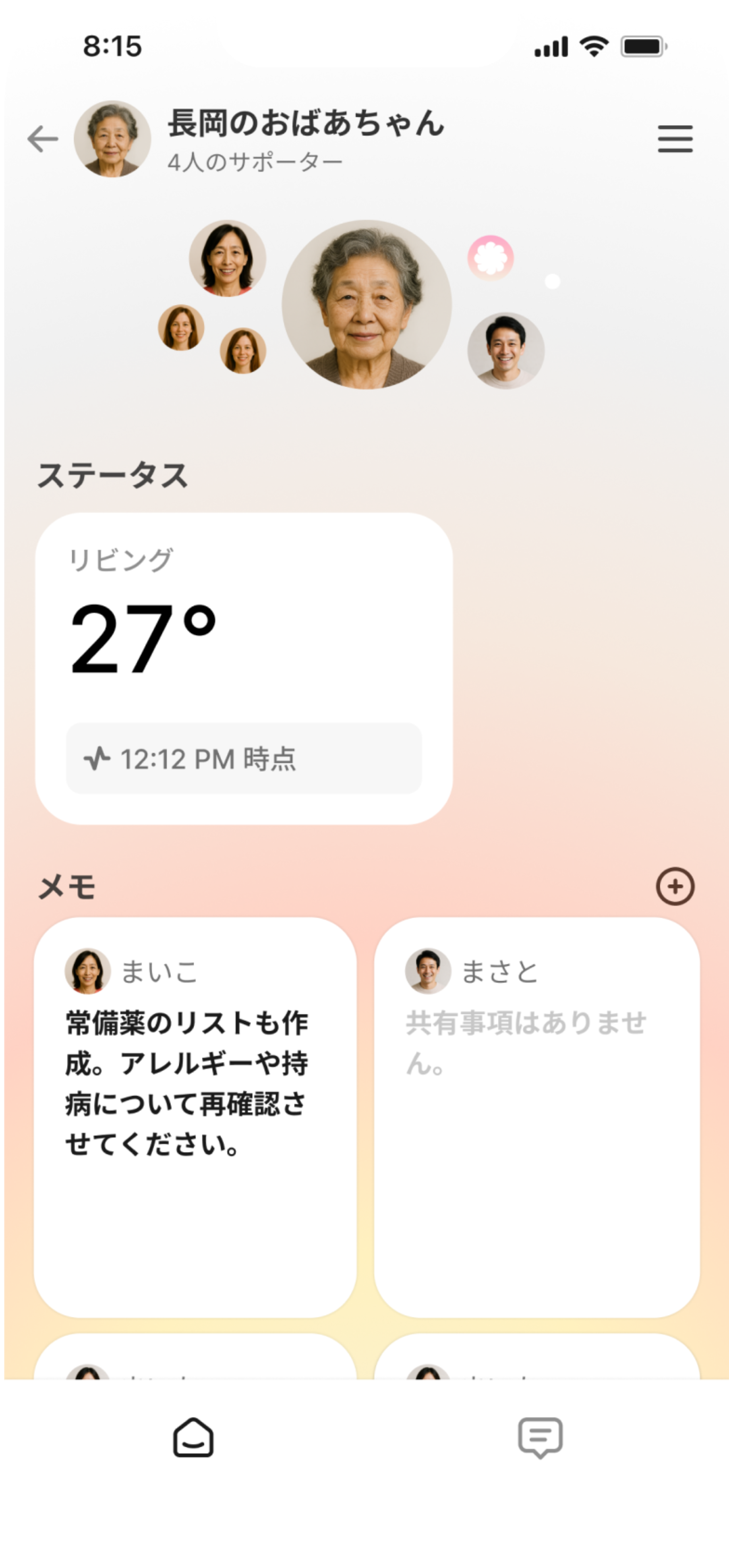 Beijuを導入してから、離れて暮らす祖母の様子がわかるようになりました。普段と違う動きがあると家族や近所のサポーターに自然に共有されるので、何かあっても迅速に対応できます。家族全員で情報を共有できるのが本当に便利です。